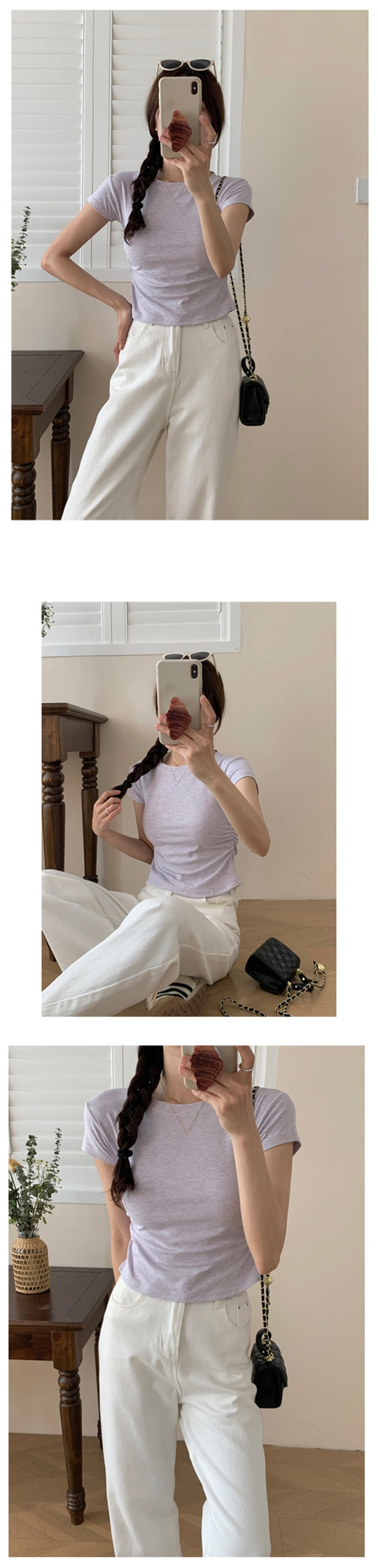 小柄女性向けソルト系フレンチスリーブトップス 夏の多巴胺コーデ 修身細見えデザイン 丸首Tシャツ