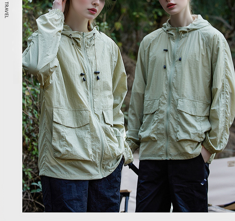 カップル日焼け止め作業服フード付きパンチングジャケット 軽量長袖スキンスーツ スポーツアウトドア夏の日焼け止め夏のアウトドア用品